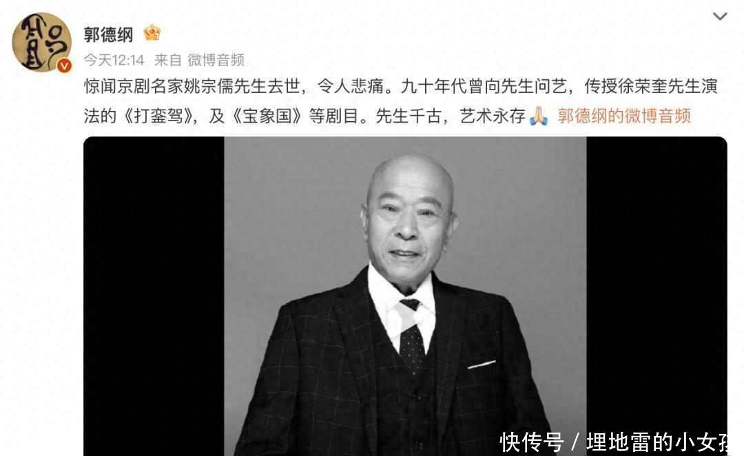老戏骨走了,没人热搜,却撑过半个世纪舞台。2025年11月12日早上八点多,姚宗儒先生在北京去世,活了86岁,郭德纲在傍晚发出消息,说他在九十年代跟姚老师学过戏,学的有《打銮驾》和《宝象国》,郭德纲这一提,让很多人第一次知道姚宗儒这个人,他不是什么大明星,但在台上确实站得住。