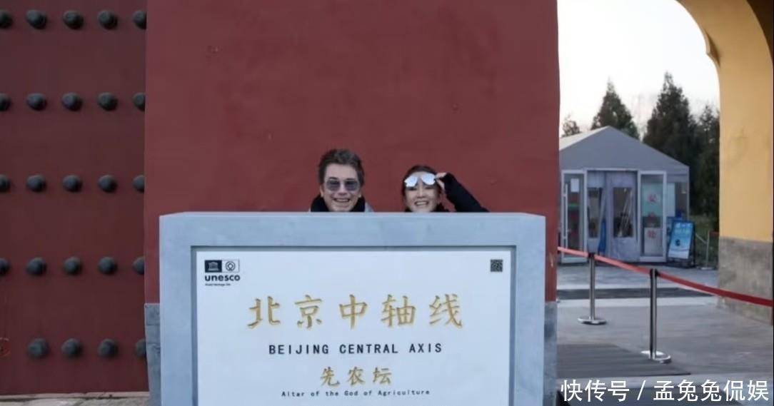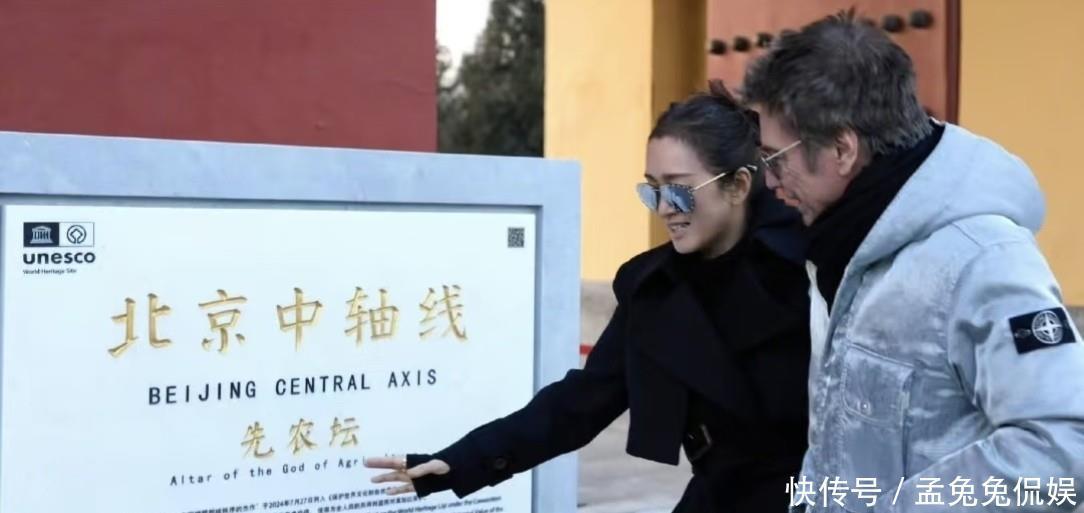 俩人在中轴线打卡,开心得像个孩子一样,在中轴线的碑后,露出俩个头,真的太有童趣了,不得不说巩俐嫁给米歇尔真的嫁对了,俩人都非常的热爱生活,步调也一样!你觉得呢?
